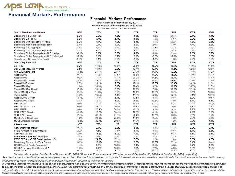 November 2025 Market Recap. If you have any questions, or wish to speak with an Advisor, please do not hesitate to contact us.